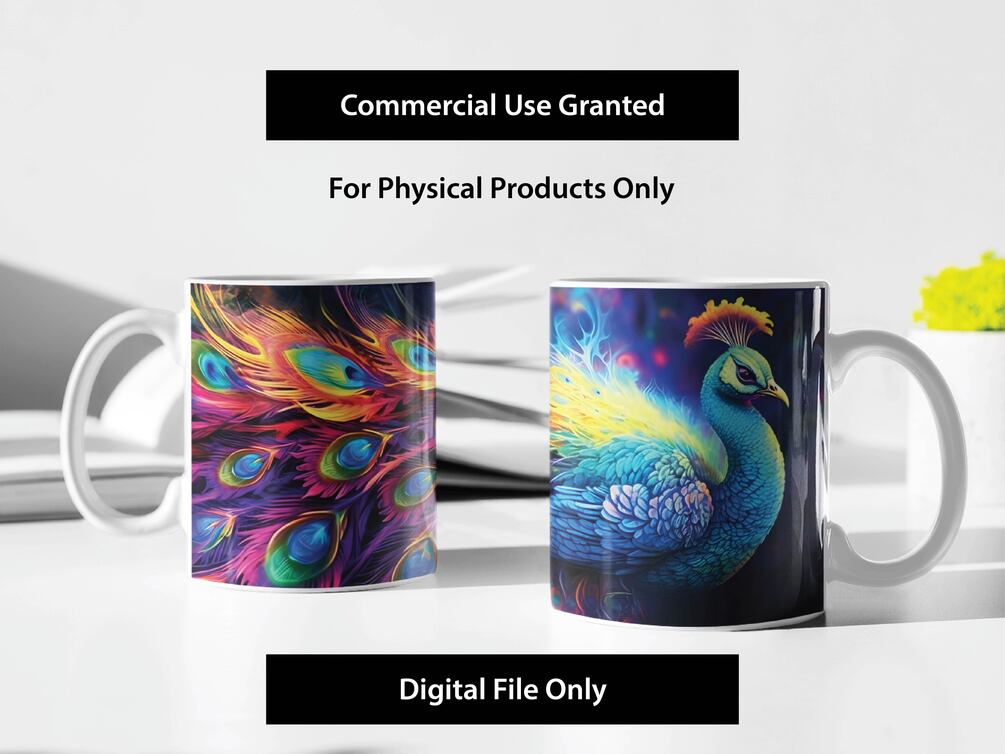 The Neon Peacock Mug Design is available for instant download, making it quick and easy to start creating your own custom mugs. Simply download the design, print it onto your sublimation paper, and transfer it onto your mug using a heat press. The high-quality design will always come out crisp and vibrant, making it perfect for personal use or gift-giving.