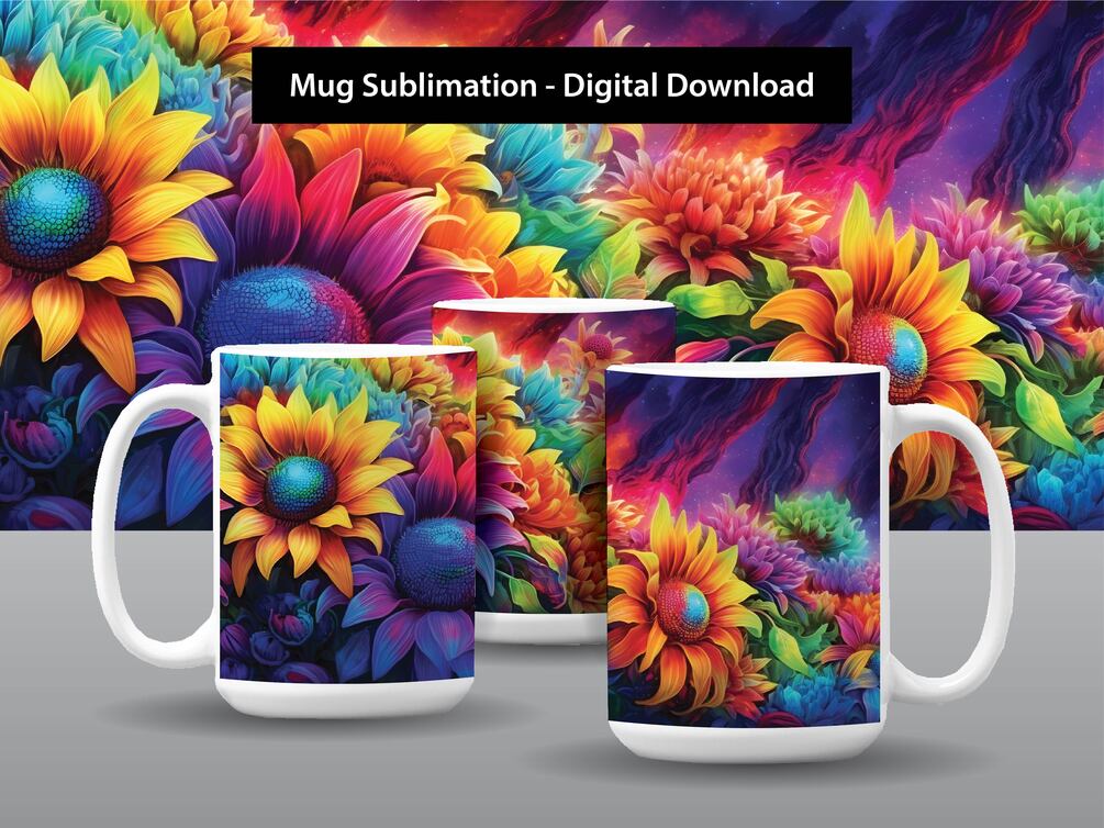 Neon Flowers Sublimation Mug Wrap Design | 11oz 15oz | Printable Download | High Resolution JPG