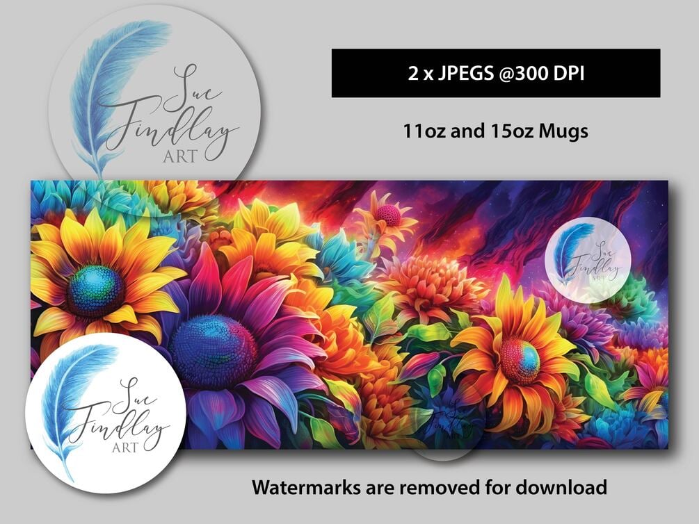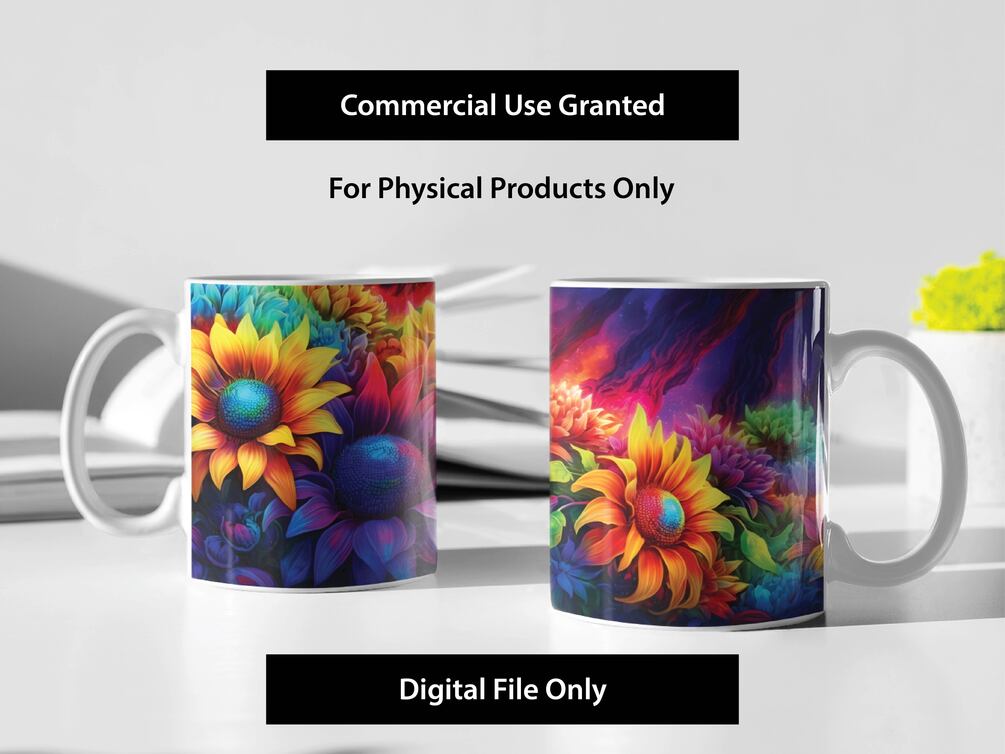 Neon Flowers Sublimation Mug Wrap Design | 11oz 15oz | Printable Download | High Resolution JPG