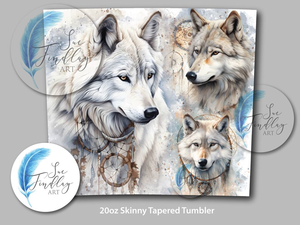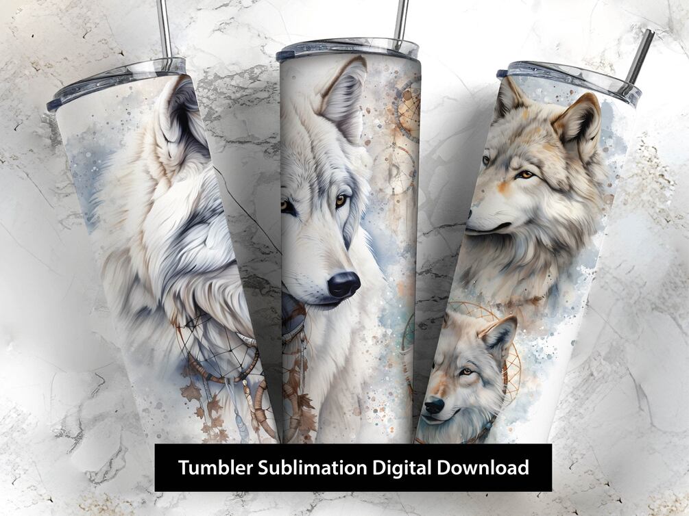 Wolf Spirit and Dreamcatcher Sublimation Tumbler Design | Watercolour | 20oz | Printable Download | High Resolution JPG