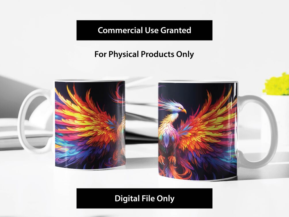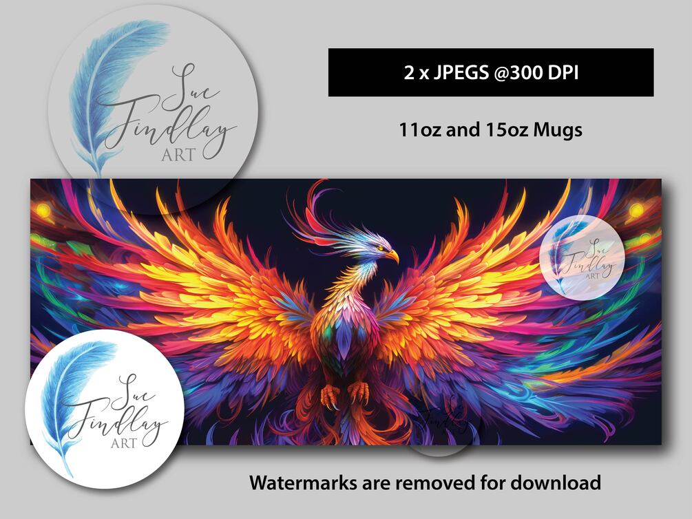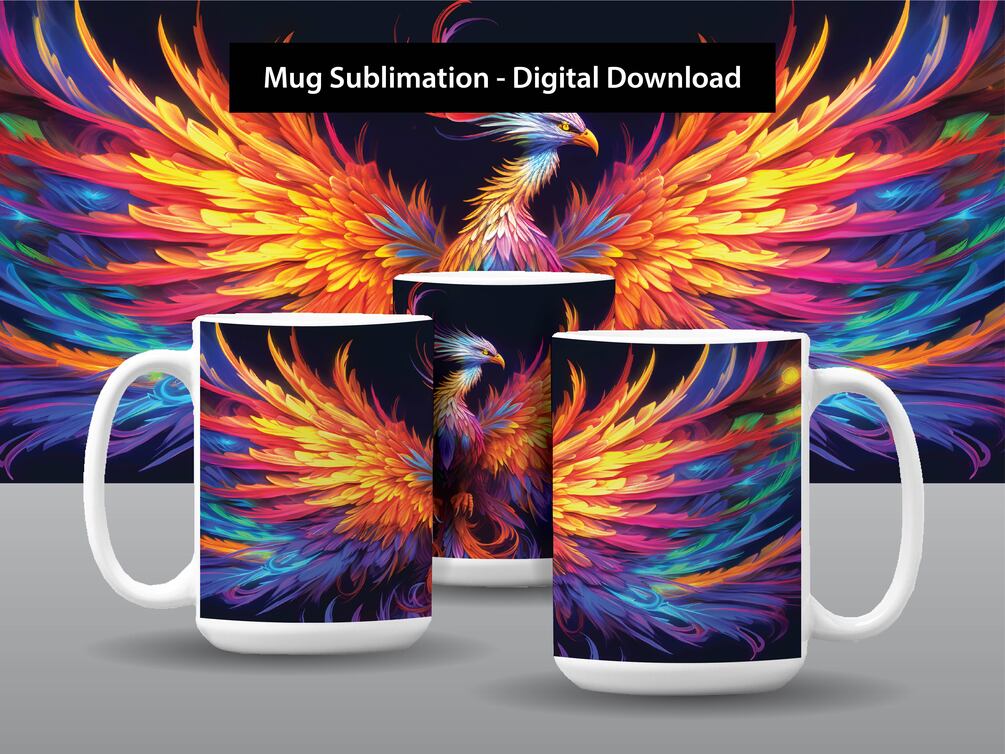 Neon Phoenix Sublimation Mug Wrap Design | 11oz 15oz | Printable Download | High Resolution JPG
